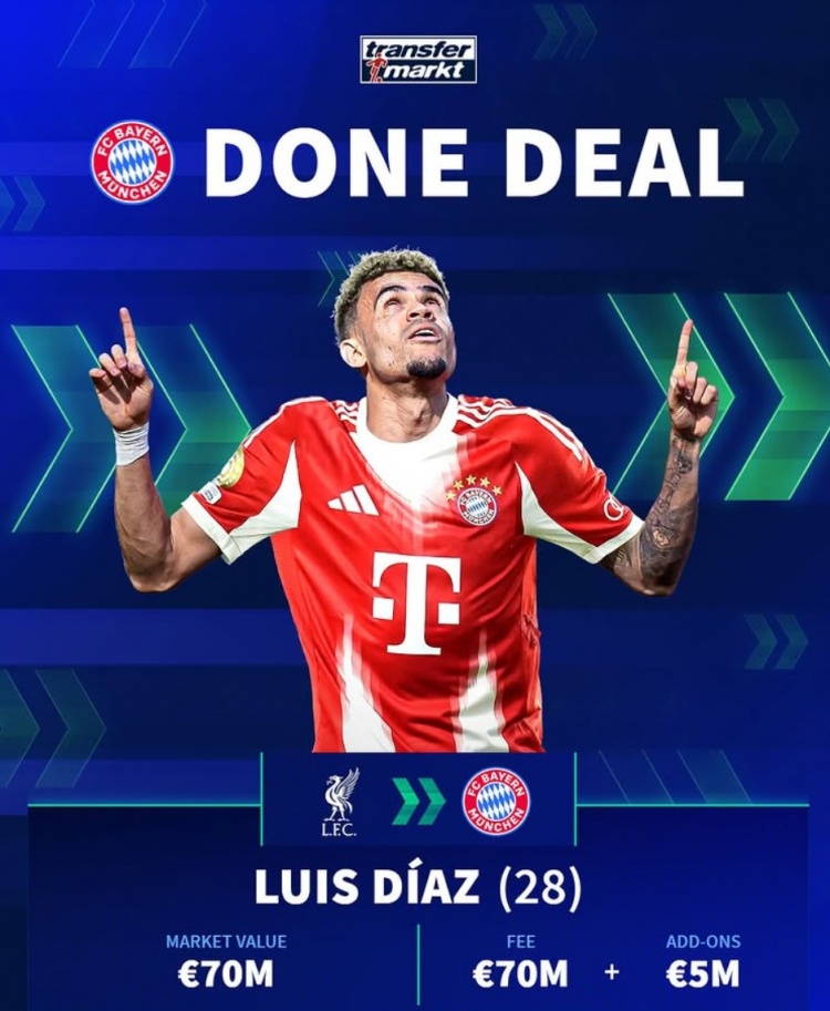 7月30日讯 拜仁也曾官宣签下28岁的利物浦边锋路易斯-迪亚斯,多方音问贯通利物浦方面以为这么的报价无法拒却。