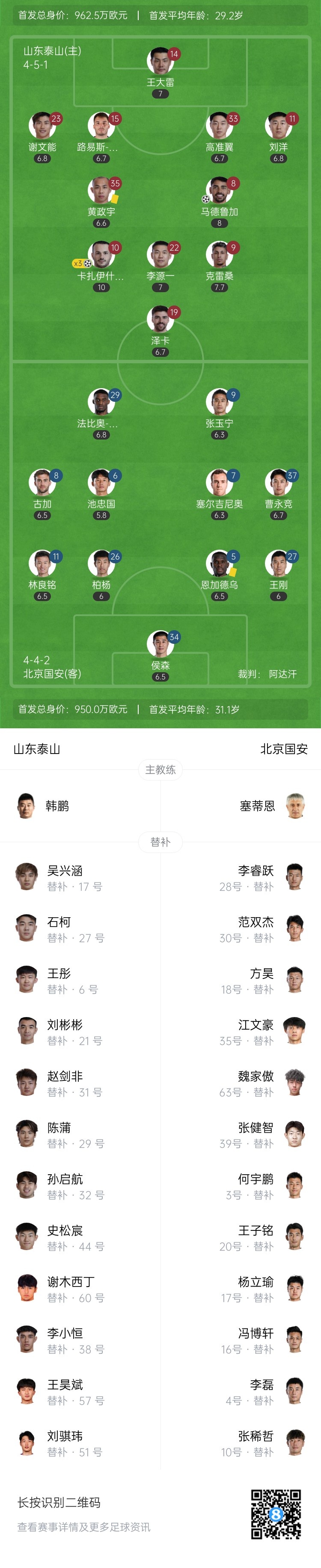 8月31日讯 北京技艺19:35,中超第23轮山东泰山vs北京国安,比赛在济南奥体中心打响!上半场,泽卡破门但克雷桑越位在先,进球无效!池忠国回传虚伪,卡扎伊什维利包抄破门;随后卡扎伊什维利接到长传单骑闯关,精彩挑射破门!半场末端前,卡扎伊什维利精彩个东谈主秀,左脚兜射完成帽子戏法;随后马德鲁加再下一城!半场末端,山东泰山主场4-0逾越北京国安。