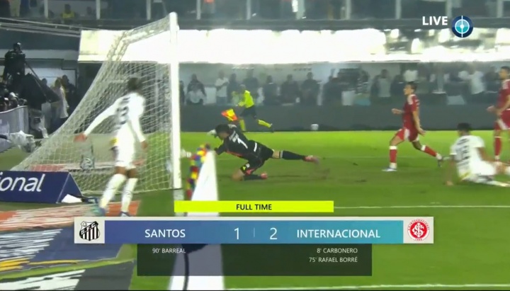 07月24日讯 巴甲第16轮,桑托斯1-2憾负巴西国外,内马尔第94分钟抽射击中立柱弹向球门,然而被门将在门线上极限扑救,最终表露此球莫得过线。