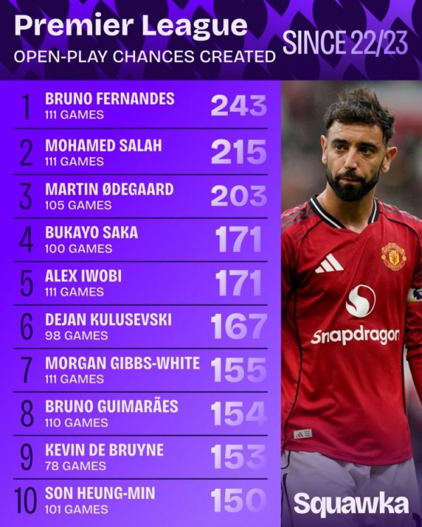 9月11日讯 数据知道,自2022/23赛季运行,B费是英超通顺战创造契机最多的球员。 2022/23赛季运行,英超通顺战创造契机榜: 1.B费 111场比赛 243次 2.萨拉赫 111场比赛 215次 3.厄德高 105场比赛 203次 4.萨卡 100场比赛 171次 5.伊沃比 111场比赛 171次 6.库卢 98场比赛 167次 7.吉布斯-怀特 111场比赛 155次 8.吉马良斯 110场比赛 154次 9.德布劳内 78场比赛 153次 10.孙兴慜 101......查看更多