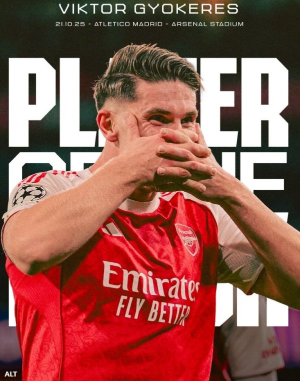 梅开二度,阿森纳官方:约克雷斯当选4-0马竞队内最好球员
