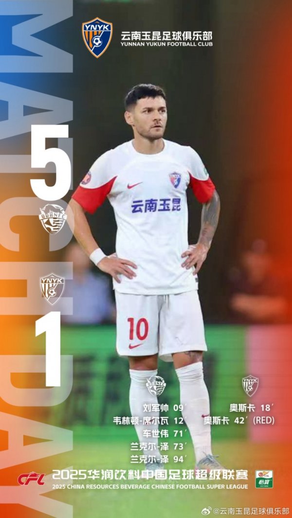 2025中超联赛第20轮,客场作战的云南玉昆最终以1-5不敌青岛海牛。开场不久被敌手连进两球后,奥斯卡曾扳回一球,但上半场比赛戒指前,奥斯卡被直红罚下。少一东说念主作战的情况下,下半场无奈被敌手连入三球。 向复古咱们的球迷一又友们说声对不起,球队的确暴泄漏理解不褂讪的问题,咱们将实时转头,诊治景象,坐窝启动准备下轮联赛。......查看更多