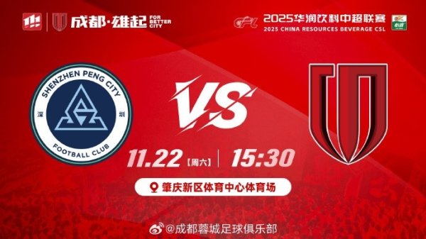 比赛日 2025华润饮料中超联赛 第30轮 ⚽ 深圳新鹏城 vs 成齐蓉城 📅 11月22日(周六)15:30 🥅 肇庆新区体育中心涌现场 📺 成齐市播送电视台环球频说念、@咪咕视频 APP、出动高清、咪视界、@咪咕音乐 请安悉数远征军和屏幕前提拔蓉城的球迷家东说念主们!成齐,雄起!......查看更多