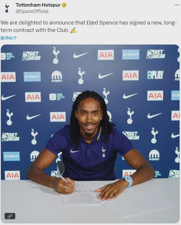 官方:热刺告示和斯宾塞签下了一份长久合同。