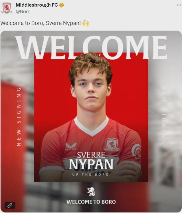 官方:米德尔斯堡告示从曼城租赁签下了尼潘。