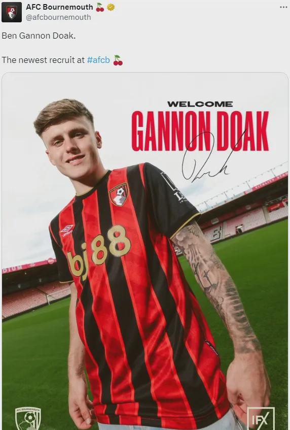 官方:伯恩茅斯告示从利物浦签下了本-多克,两边签下了一份5年合同。