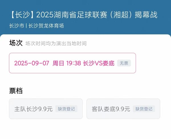 9月1日下昼6时,2025湖南省足球联赛揭幕战长沙对阵娄底的门票认真开售,放票1分钟,长沙主队门票售罄,不到半小时主队长沙、客队娄底的门票沿路售空。在这场5万多东说念主参与的抢票狂欢中,球迷们天然是得票欢乐失票愁。为此,潇湘晨报记者专程相关到几位长沙队、娄底队的球迷,与他们相易抢票体验和赛前测度。 △9月7日揭幕战门票销售一空。记者截图陶然麦网 “手脚一位村生泊长的长沙球迷,抢到揭幕战主队门票的工夫我手齐在发抖!”长沙市民李先生说,门票开售前迥殊钟他就守入部下手机反复刷新,惟......查看更多