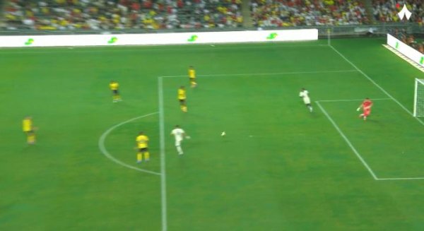 本泽马BUFF利雅得得手门将出球站立,本泽马原地断球射门打偏
