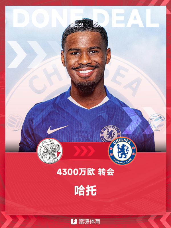 官方:切尔西签下19岁阿贾克斯左后卫哈托,转会费4418万欧
