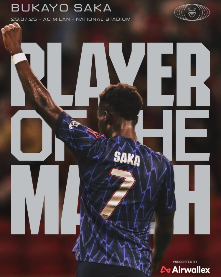 赛后,阿森纳俱乐部官方晓喻,萨卡当选本场比赛队内最好球员。本场比赛,萨卡先发出战,除了进球,他还送出2次要害传球,3次抢断奏效。