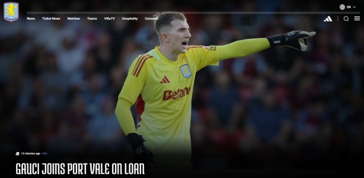 官方:维拉门将乔-高王人外租英甲维尔港,租期一个赛季