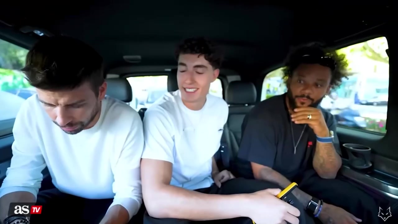 10月17日讯《阿斯报》晒出一段节目视频,前巴萨后卫皮克和前皇马后卫马塞洛以及一位主执东谈主同坐一辆车内,随后皮克启动了他的“开顽笑”。