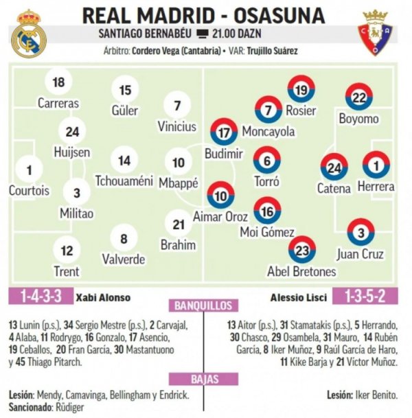 8月19日讯 北京本事未来凌晨3点,皇马将在西甲首轮比赛中主场对阵奥萨苏纳。西班牙媒体《马卡报》瞻望了皇马此役的首发声威,姆巴佩、维尼修斯、迪亚斯构成三叉戟。 《马卡报》瞻望皇马西甲首轮先发声威 门将:库尔图瓦 后卫:A费、怀森、米利唐、阿诺德 中场:居勒尔、琼阿梅尼、巴尔韦德 时尚:维尼修斯、姆巴佩、迪亚斯......查看更多