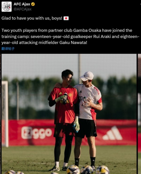 阿贾克斯官方:来快意阪钢巴的2名年青日本球员加入侦探营