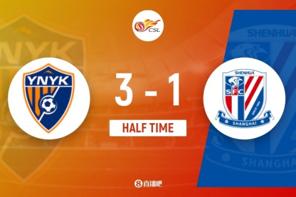 半场-申花客场1-3落伍玉昆 奥斯卡&罗竞互献传射高天意放浪球破门