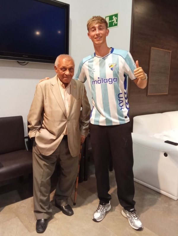 回家!赫伊森拜谒青训母队马拉加,身穿马拉加球衣拍照