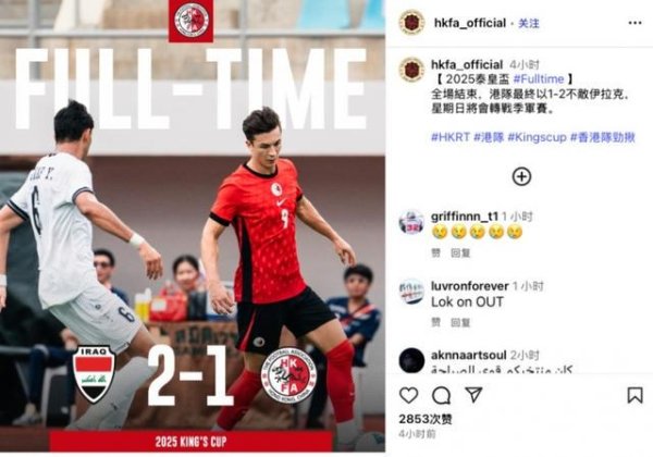 泰王杯半决赛中国香港队1-2遭伊拉克队逆转,安永佳完成破门